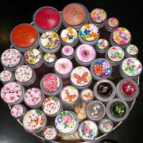 Les boutons ont plusieurs fonctions, ils peuvent servir à réactualiser un vêtement, à fermer ou simplement de décoration. Réalisez des bijoux, bague, bracelet, barrette, cousu ou collé. A vous de trouver la fameuse petite boîte dans laquelle vous rangerez toute votre collection : insérez-y des boutons de différentes couleurs, dans plusieurs dimensions, pour systématiquement trouver la pièce idéale, le nombre en fonction de votre propre projet.